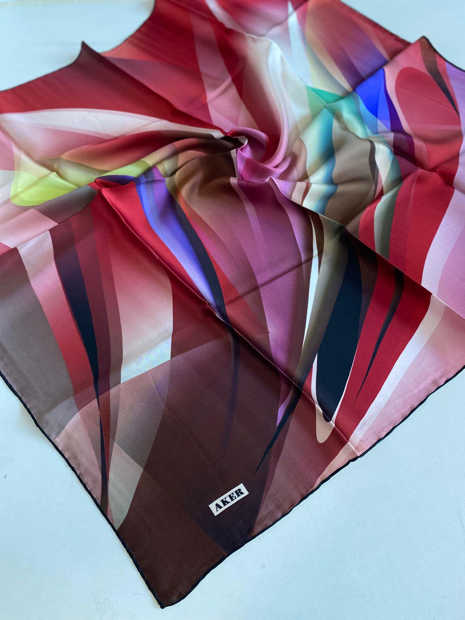 Aker Sura Saf İpek Eşarp 51730 Kırmızı Soyut Desen (SYR51730)
