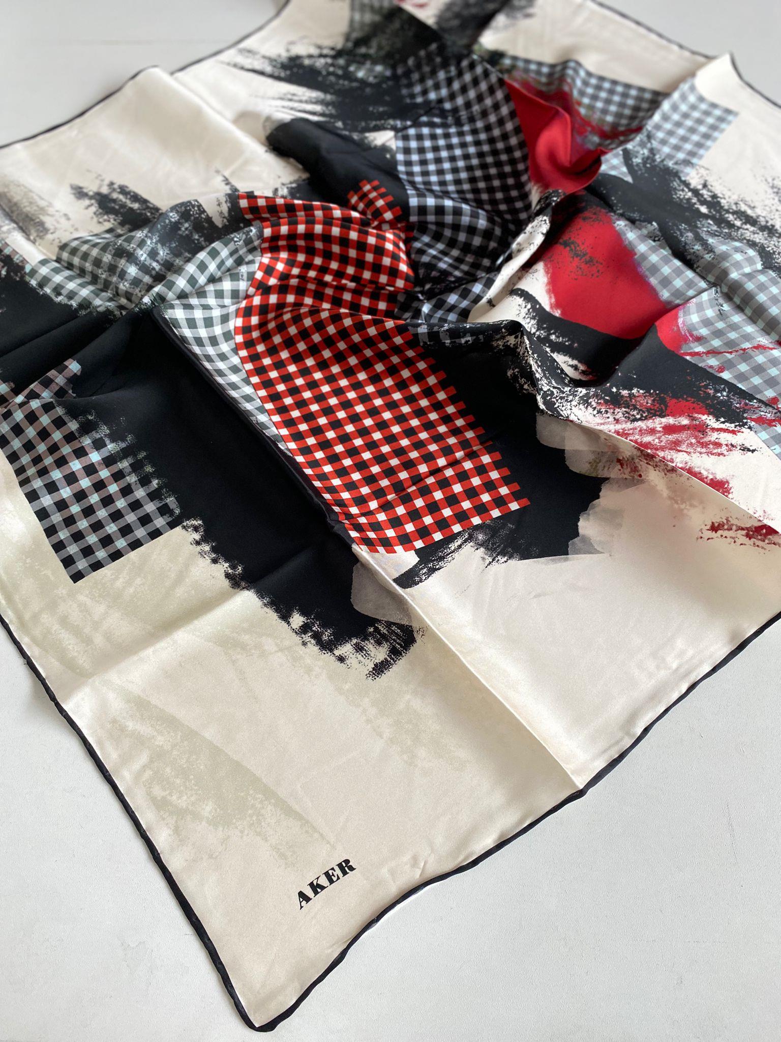 Aker Sura Saf İpek Eşarp 8355701 - 313 Krem Ekose Desen