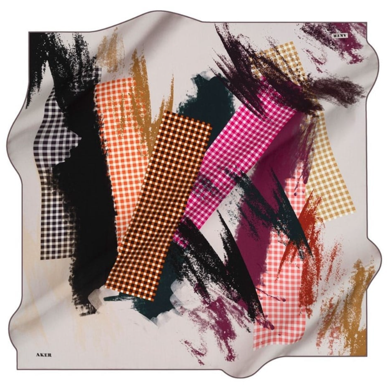 Aker Sura Saf İpek Eşarp 8355701 - 392 Pudra Ekose Desen