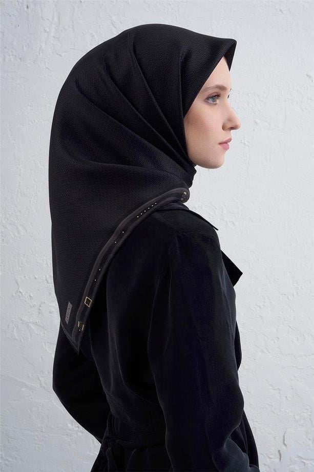 Armine Tivil Saf İpek Eşarp 9401 - 52 Siyah Logo Desen