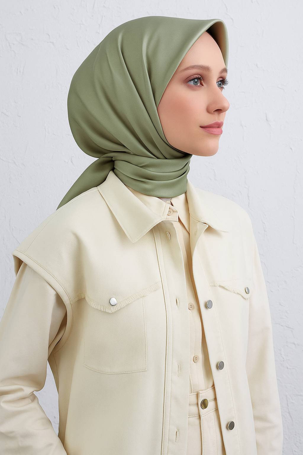Armine Green Plain Color Twill Silk Scarf 10D02 - 179