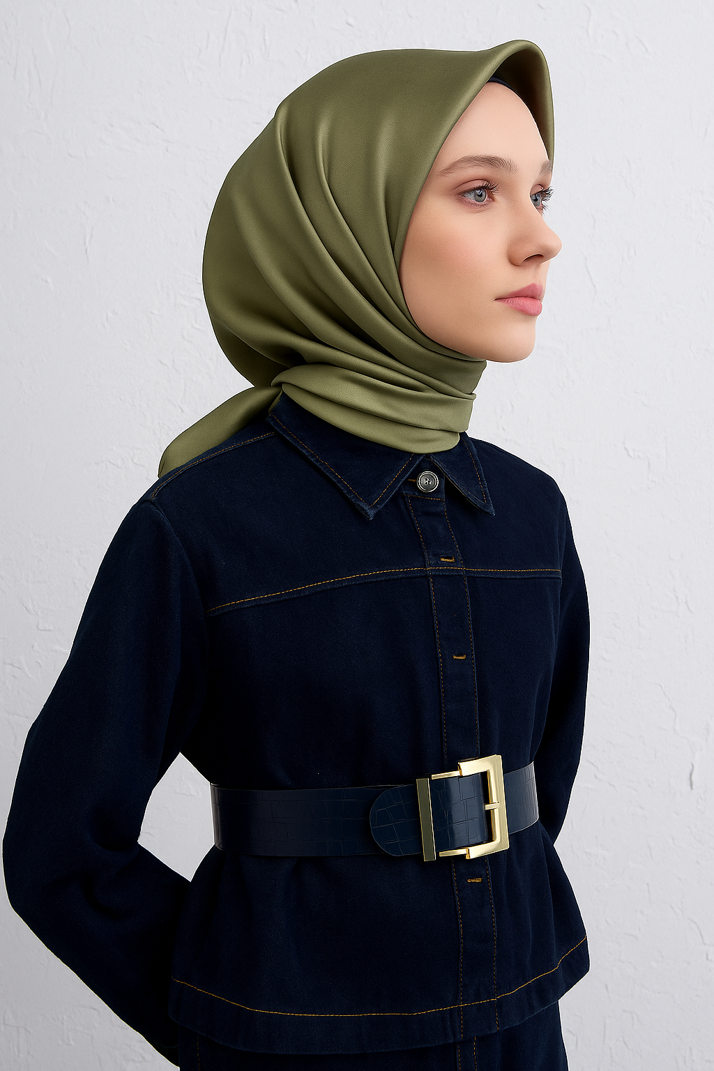 Armine Khaki Green Plain Color Twill Silk Scarf 10D02 - 181