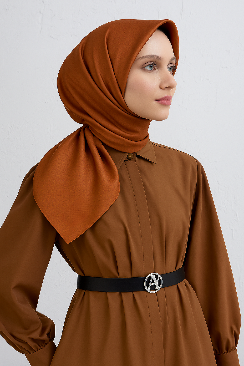 Armine Orange Plain Color Satin Silk Scarf 10D01 - 407