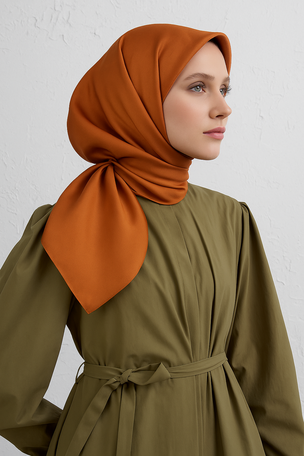 Armine Orange Plain Color Satin Silk Scarf 10D01 - 50