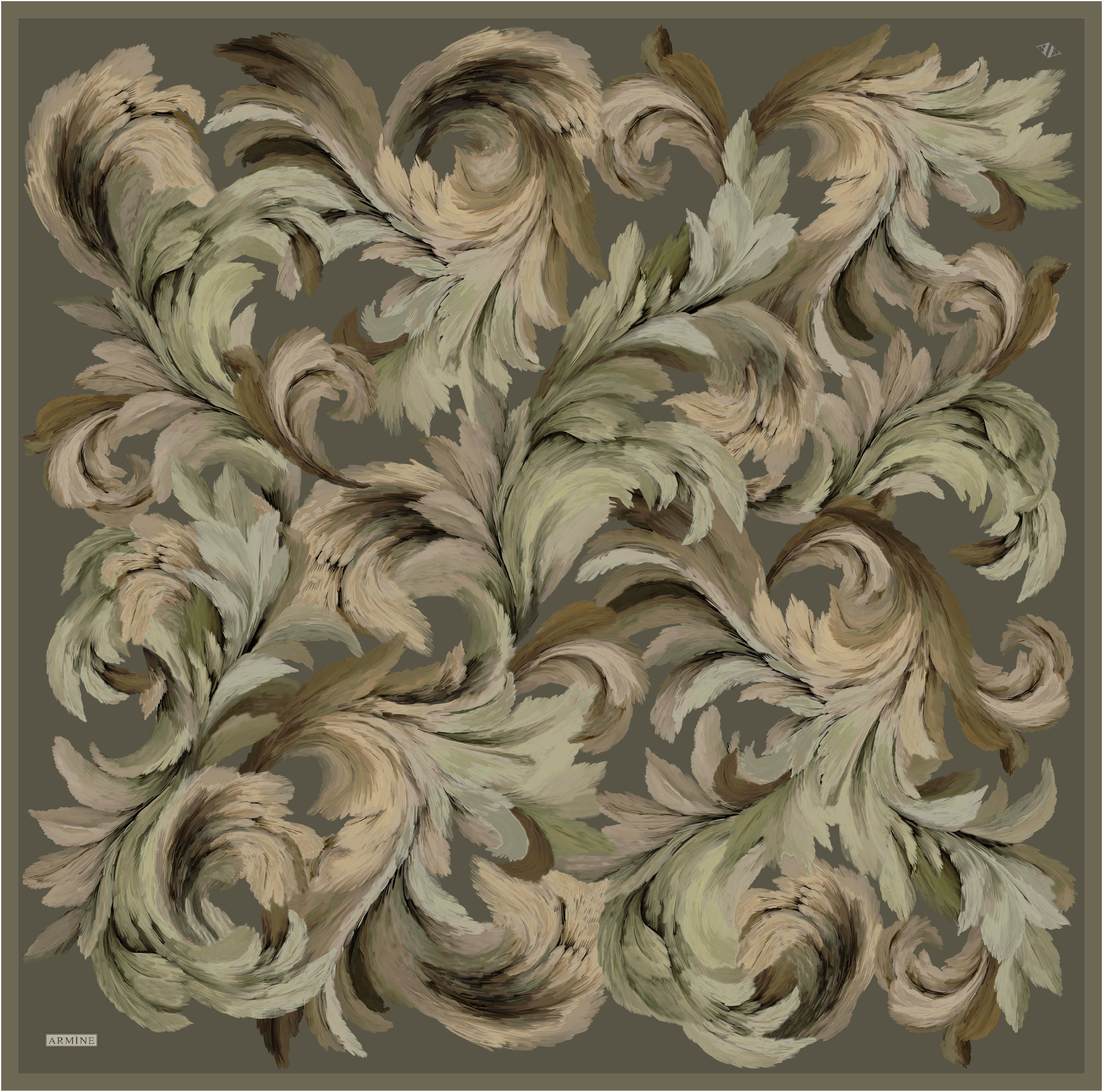 Yeşil zemin üzerine açık yeşil tonlarında karışık desenlerle süslenmiş bu eşarp, doğanın huzurunu ve zarif bir şıklığı bir arada yansıtıyor.