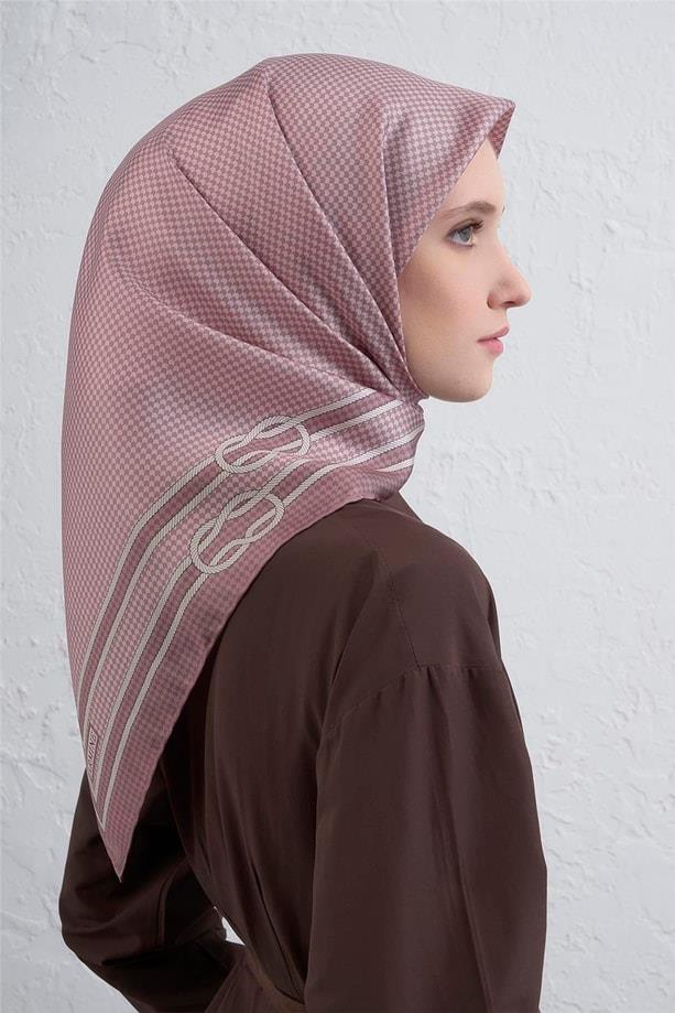 Armine Sura Saf İpek Eşarp IST 9404 - 06 Pudra Karışık  Desen