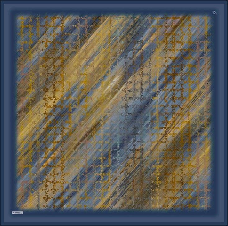 Armine Sura Saf İpek Eşarp IST 9420 - 54 Lacivert Karışık  Desen