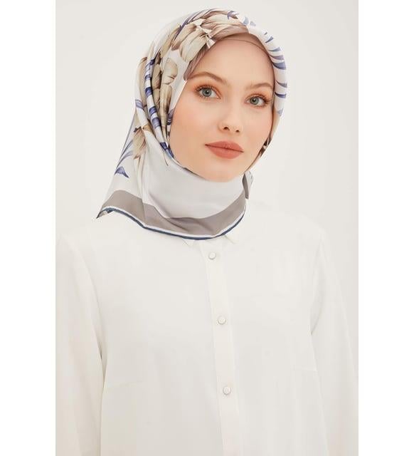 Armine Sura Saf İpek Eşarp IST8946-31 Çiçek Desen
