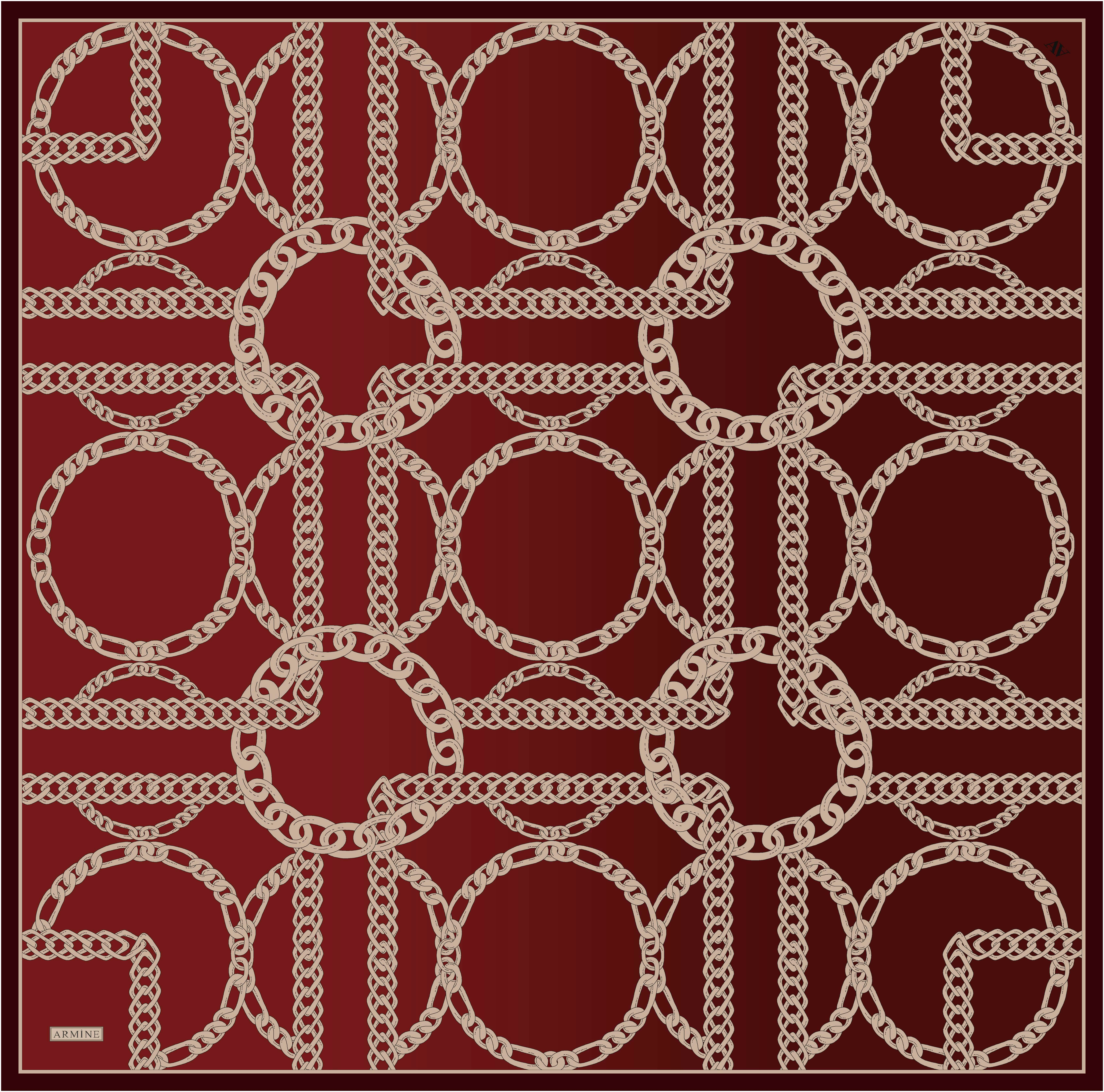 Armine Tivil Saf İpek Eşarp 9415-09 Bordo Karışık Desen