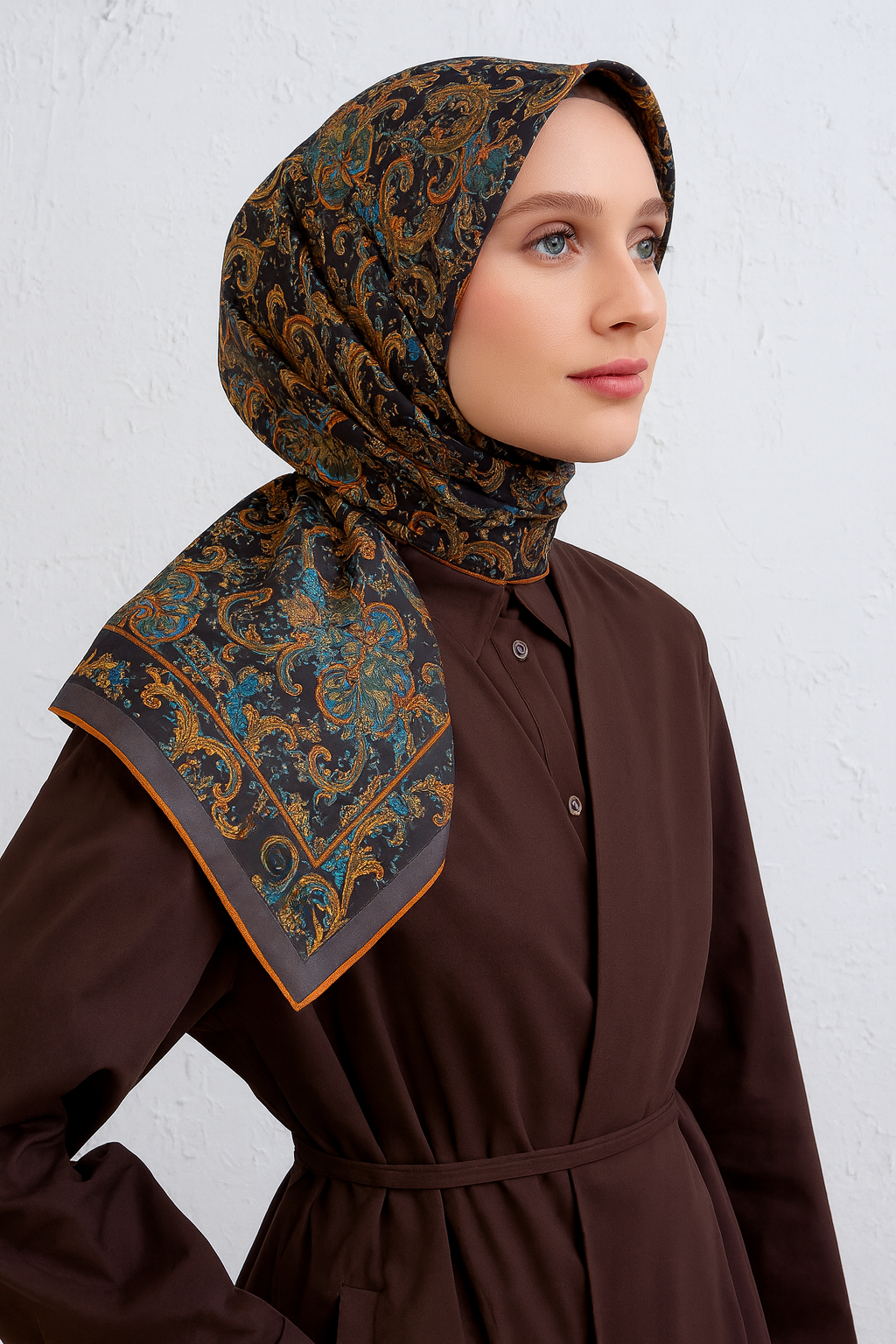 %100 saf ipek kumaşı sayesinde hem yumuşak hem de doğal bir parlaklığa sahip olan bu eşarp, gün boyu rahat kullanım sunar.
