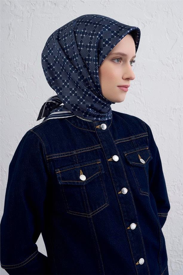 Armine Tivil Saf İpek Eşarp 9440 - 53 Lacivert Karışık Desen (SYR50676)