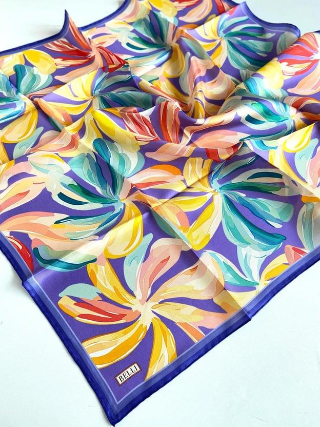 Belli 2025 Yaz Tivil Saf İpek Eşarp IST4107 - 36 Mor Çiçekli Desen (IST02907)