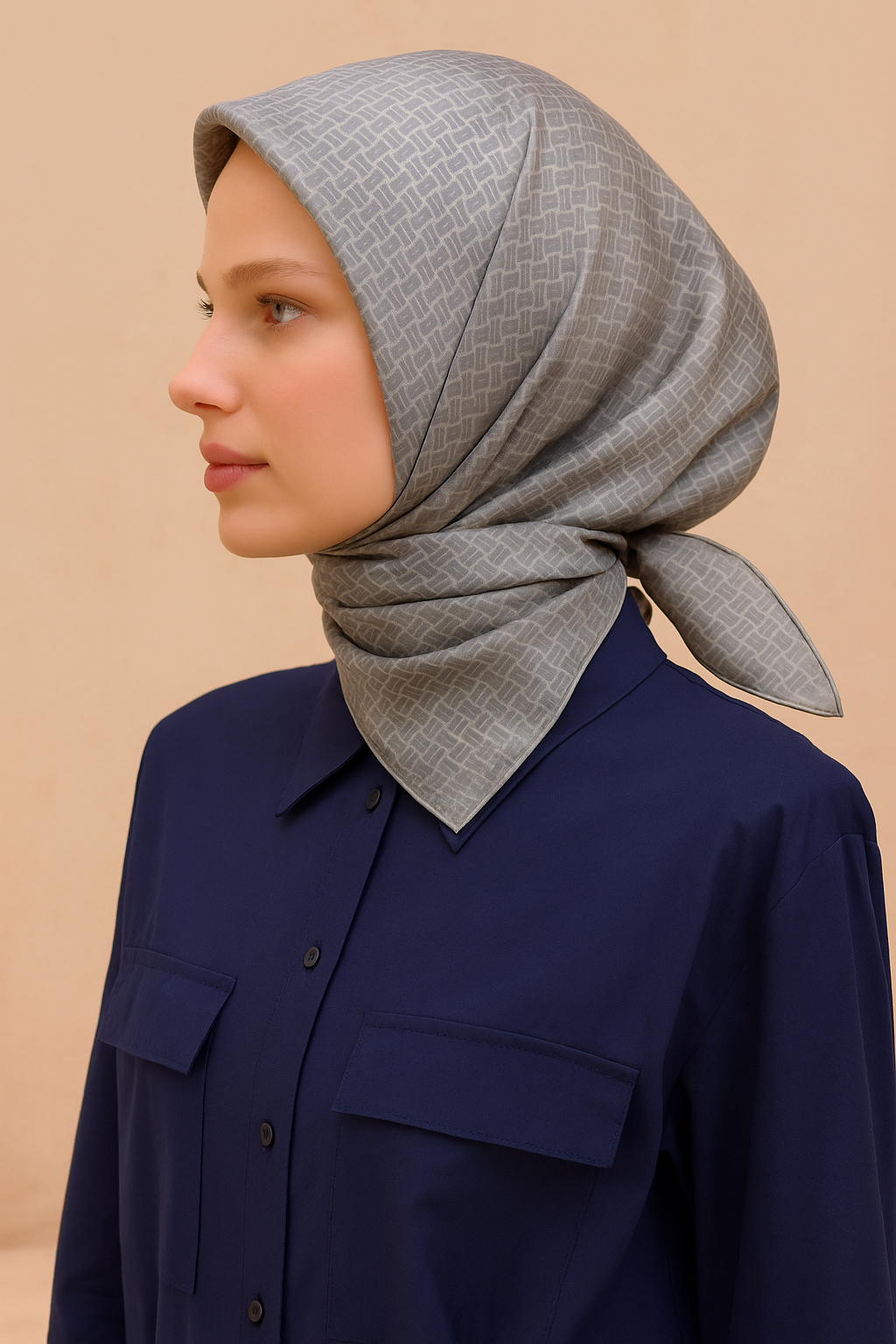 Belli Tivil Saf İpek Eşarp 4203 - 32 Gri Geometrik Desen (SYR50809)