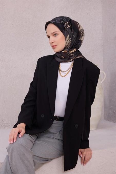 Belli Tivil Saf İpek Eşarp 4206 - 83 Füme Ekose Desen (SYR50822)