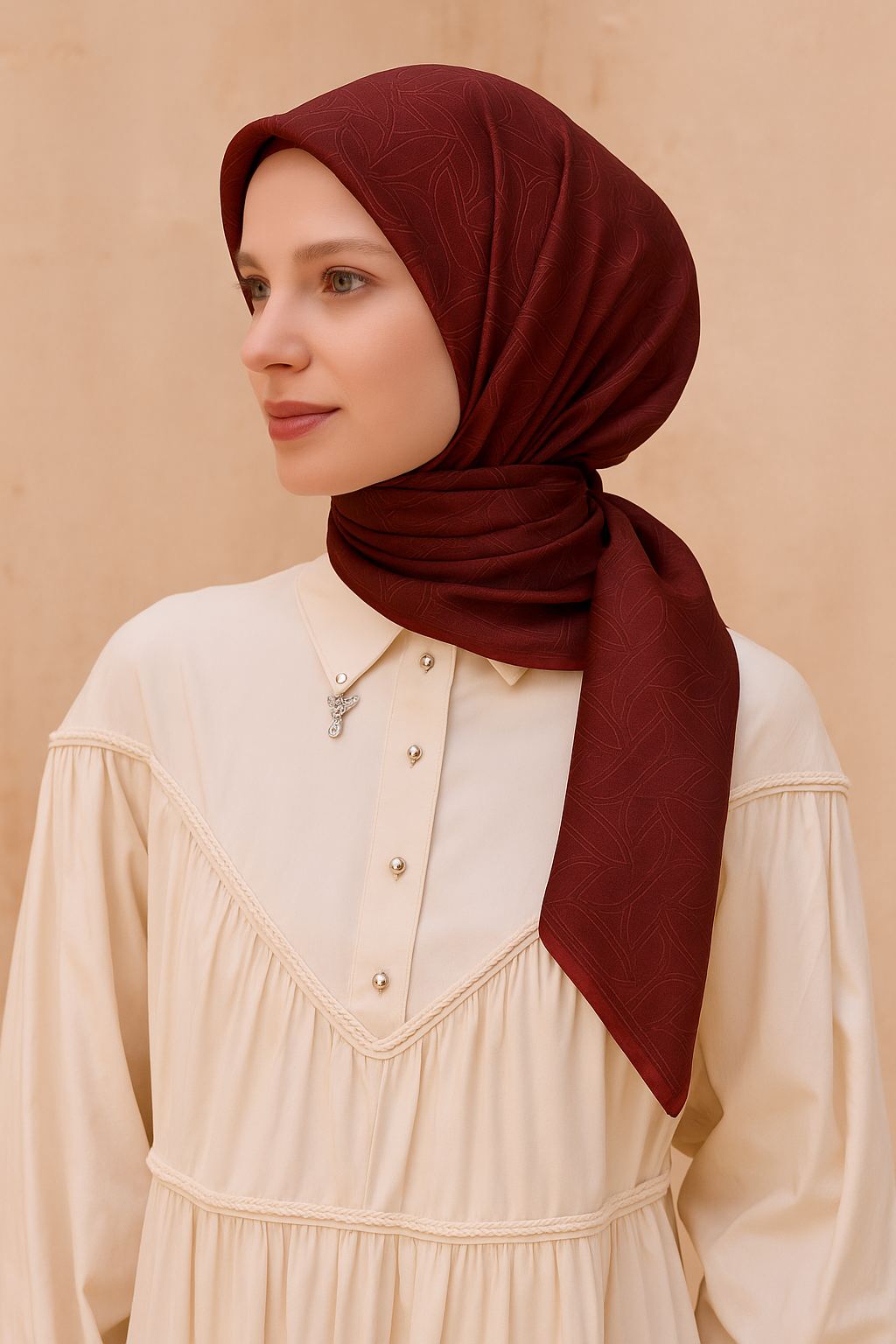 Belli Tivil Saf İpek Eşarp 4221 - 03 Bordo Soyut Desen (SYR50768)