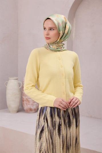 Belli Tivil Saf İpek Eşarp IST 4210 - 58 Sarı Çiçekli Desen (IST02920)