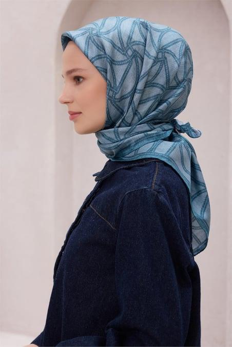 Belli Tivil Saf İpek Eşarp IST 4221 - 80 Turkuaz Geometrik Desen (IST02913)