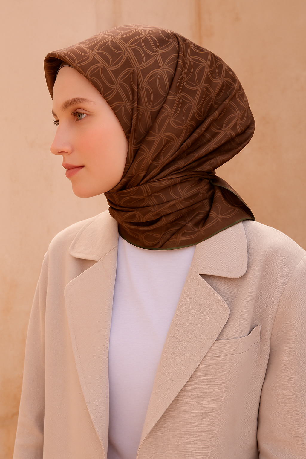 Belli Twill Pure Silk Scarf 4221 - 84 Brown Abstract Pattern