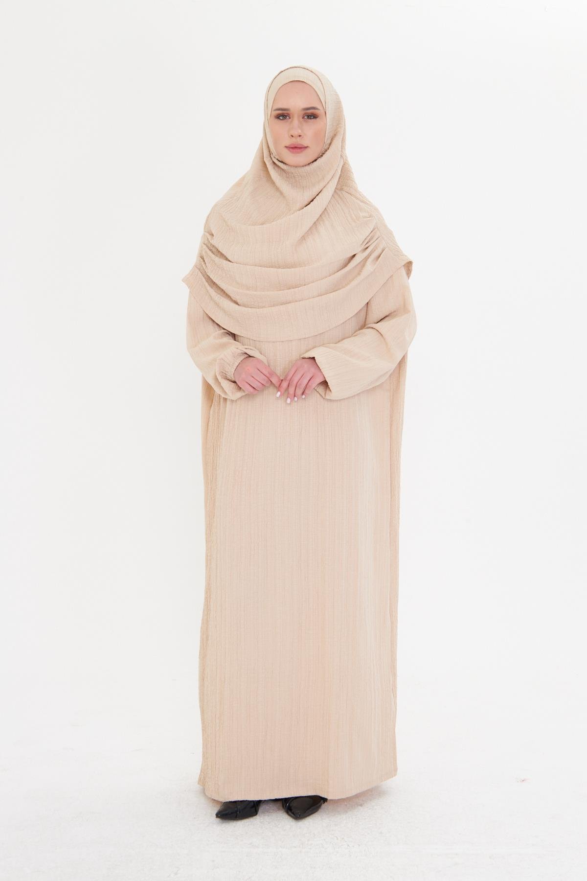 Bej İki Parça Namaz Elbisesi Dokuma Kendinden Desenli 2502_12 (2502_12)