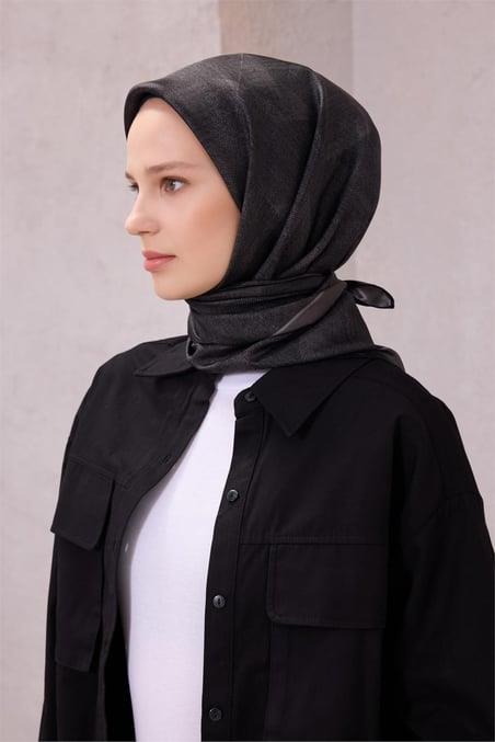 Belli Tivil Saf İpek Eşarp 4201 - 50 Siyah Armürlü Desen