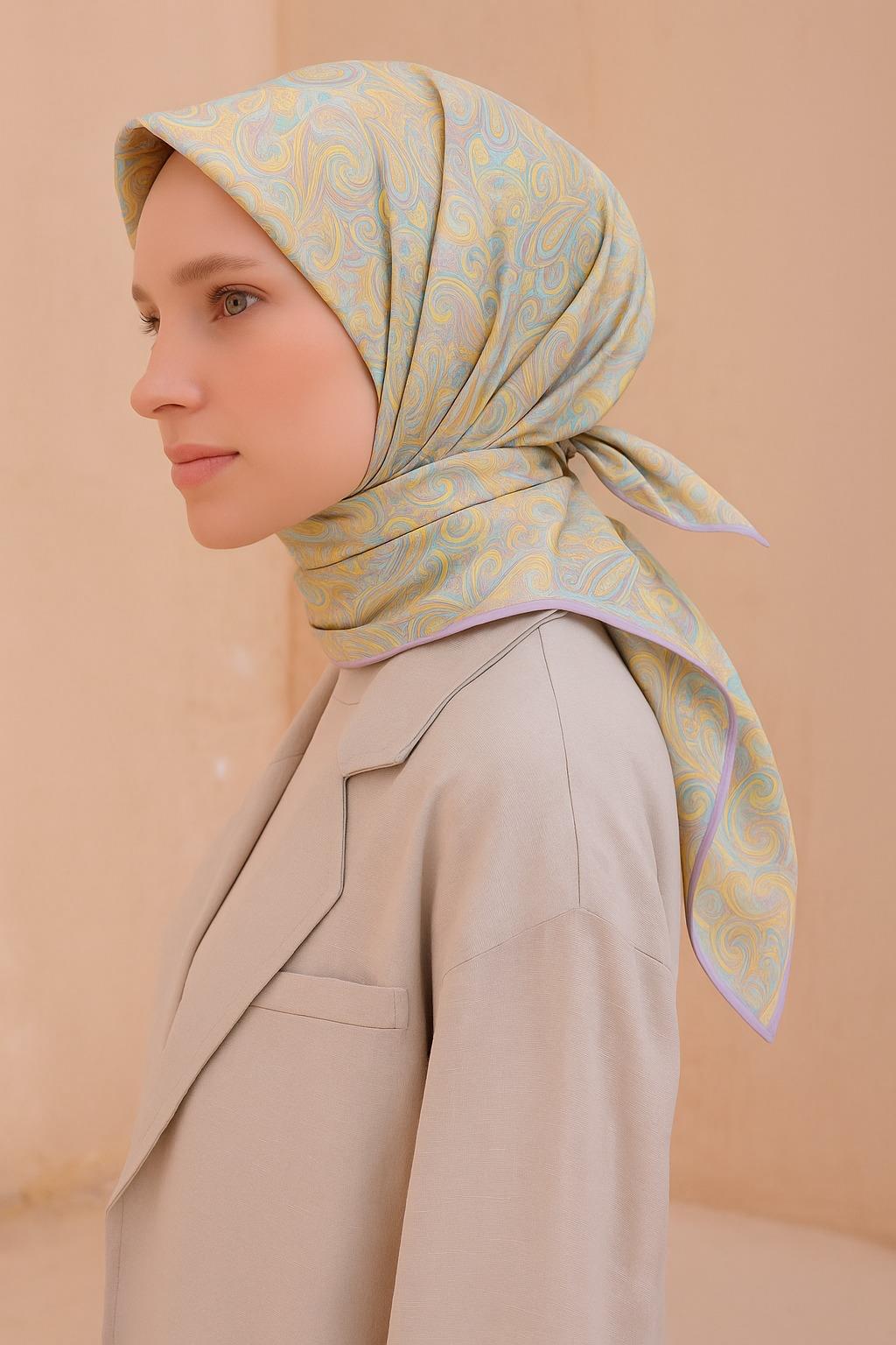 Belli Twill Pure Silk Scarf 4222 - 51 Yellow Abstract Pattern