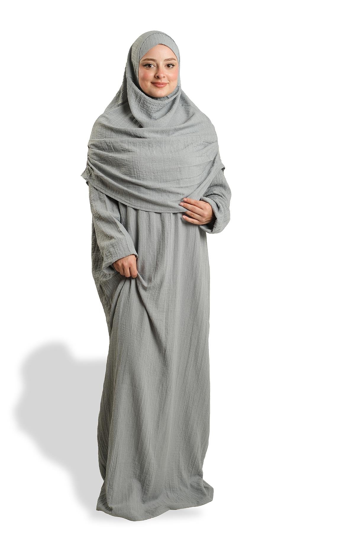 Gri İki Parça Namaz Elbisesi Dokuma Kendinden Desenli 2502_15 (2502_15)