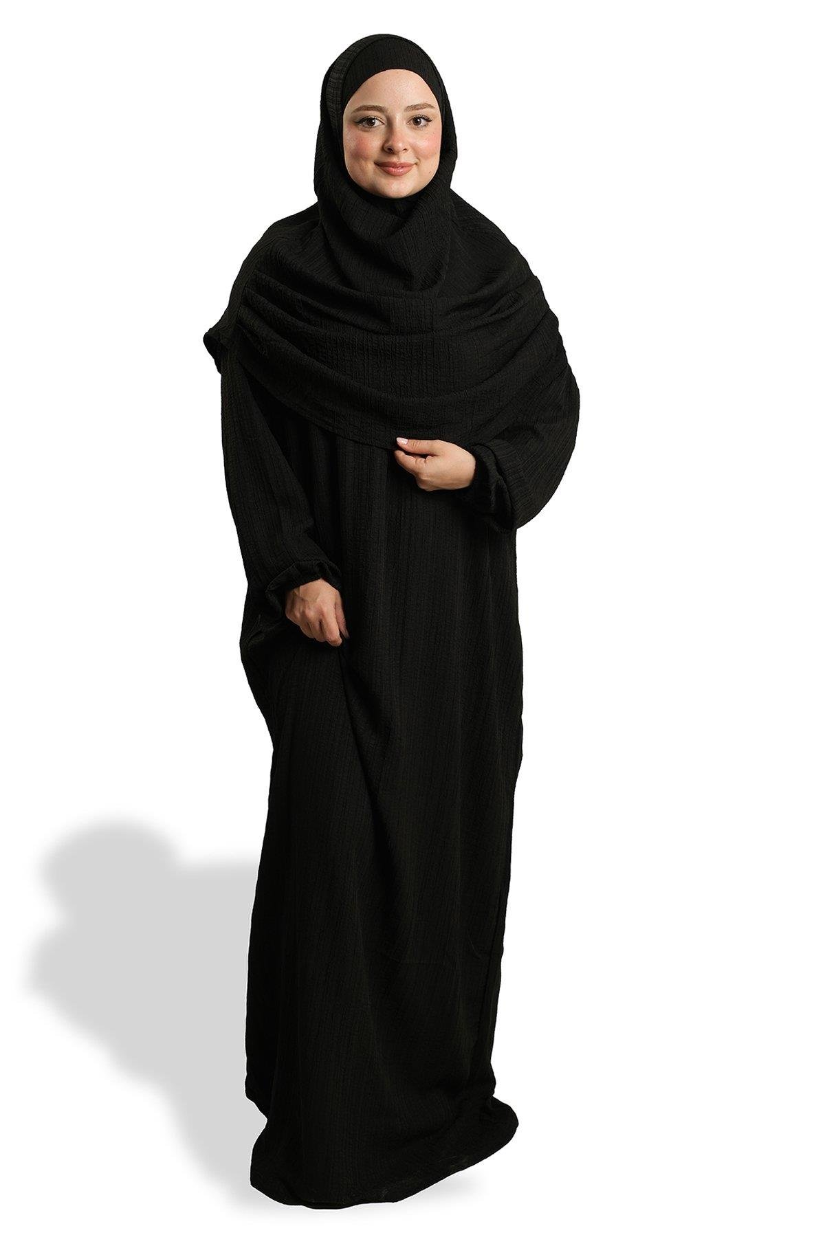 Siyah İki Parça Namaz Elbisesi Dokuma Kendinden Desenli 2502_01 (2502_01)