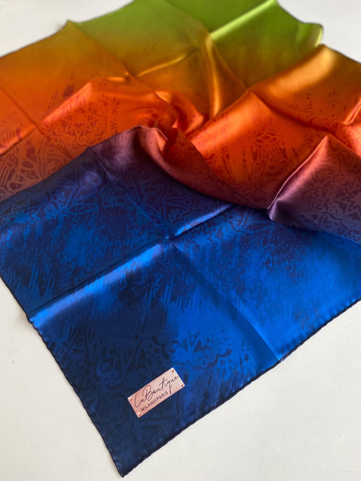 La Boutique Az Hatalı Sura Saf İpek Eşarp 50947 Mavi Karışık Desen (SYR50947)