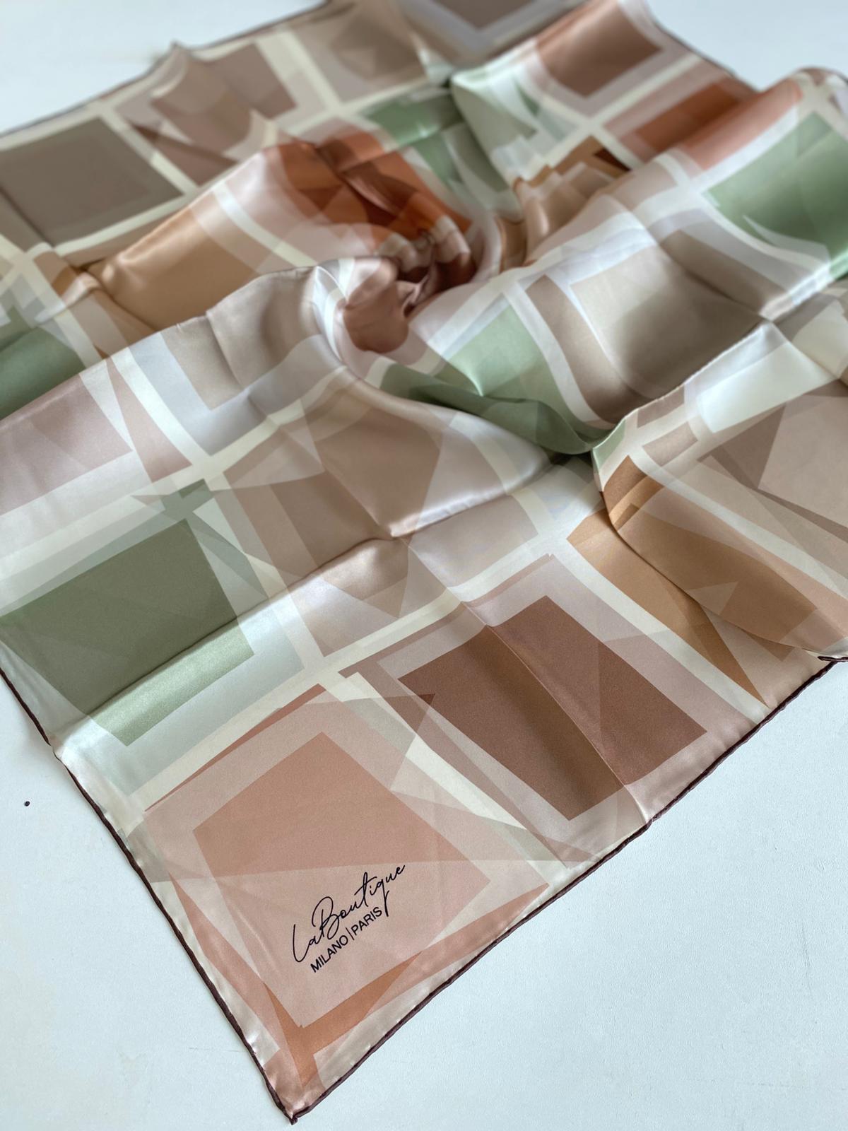 La Boutique Az Hatalı Sura Saf İpek Eşarp 50953 Vizon Karışık Desen