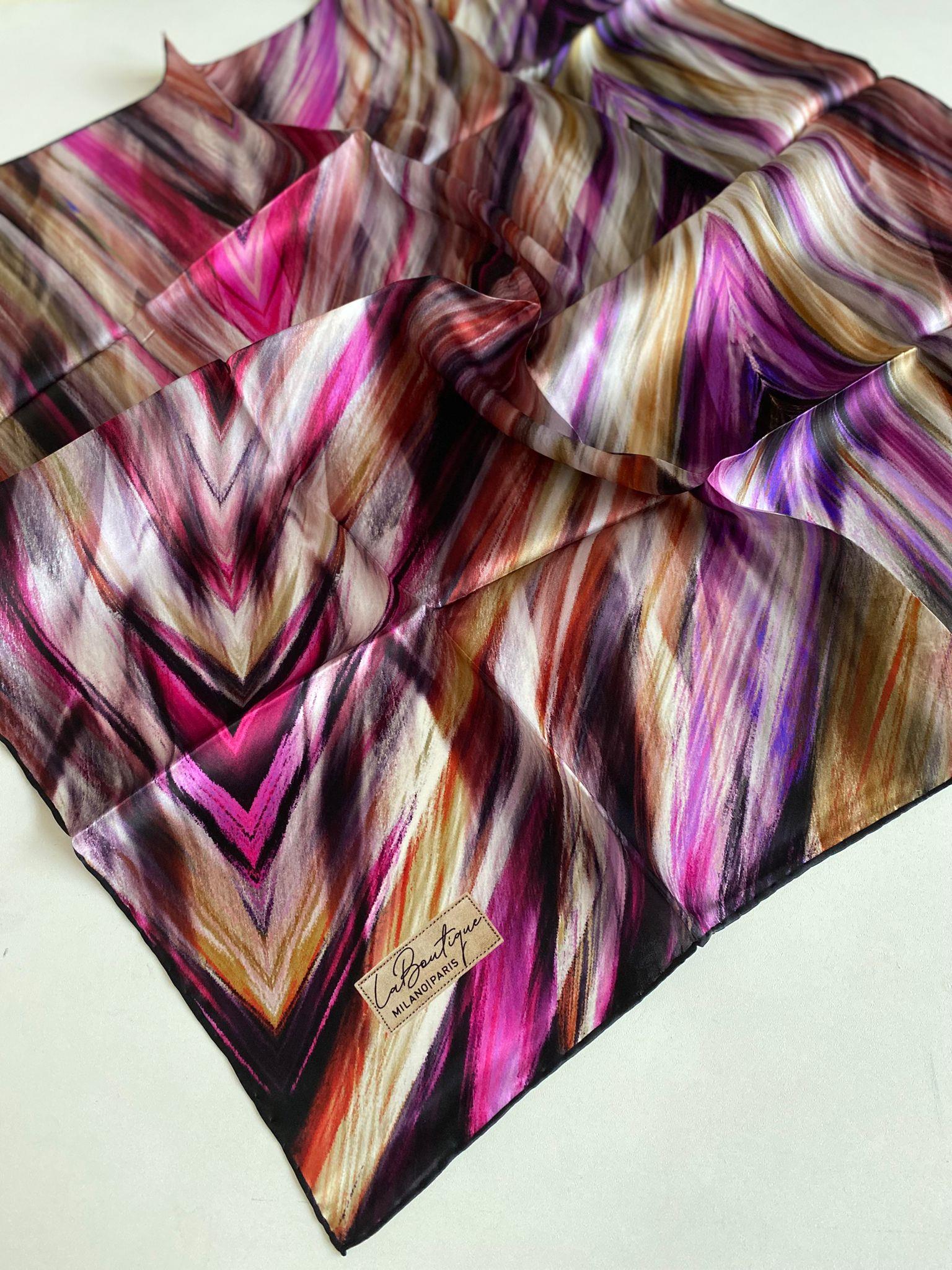 La Boutique Az Hatalı Sura Saf İpek Eşarp 50961 Mor Karışık Desen