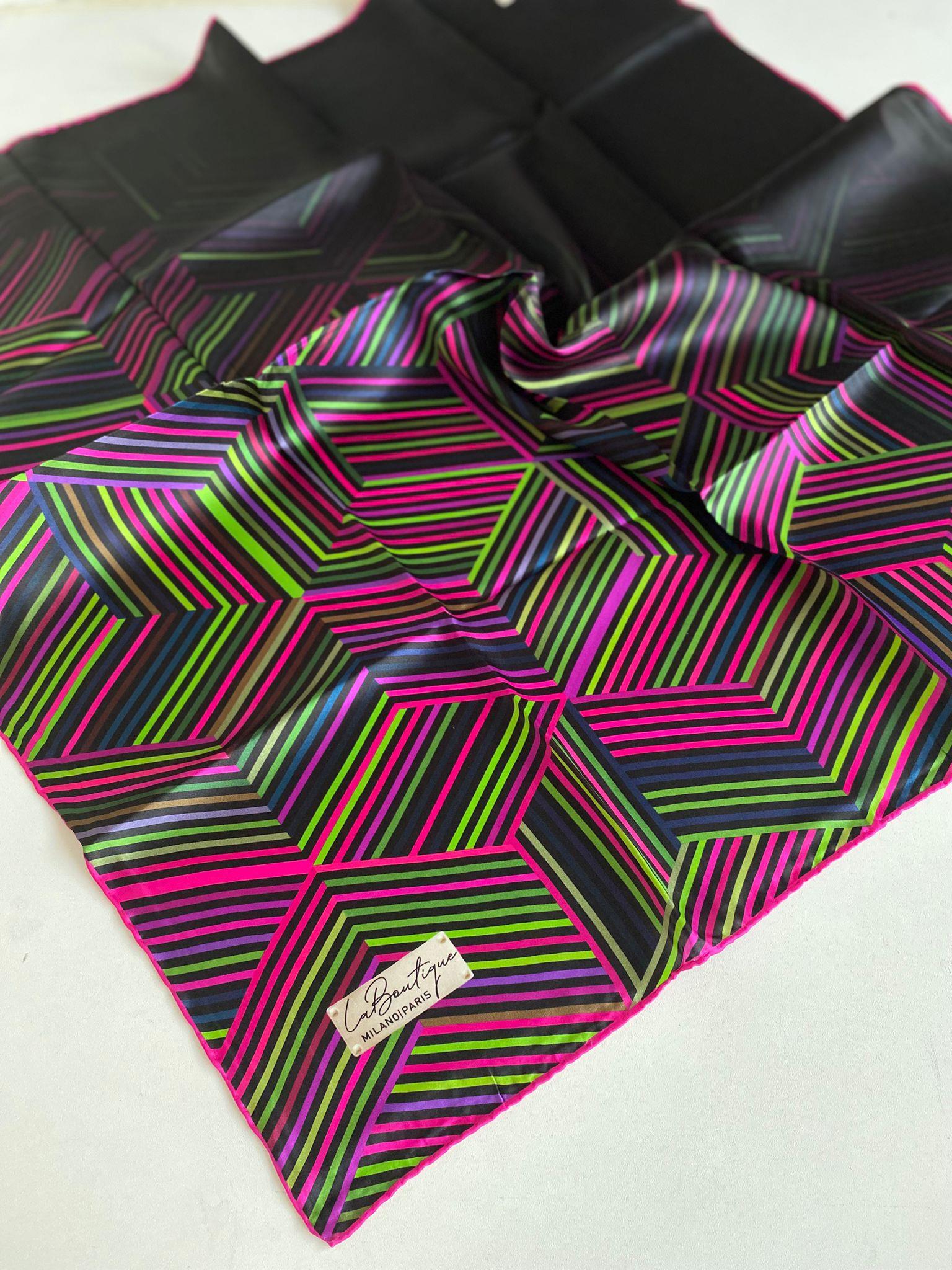 La Boutique Az Hatalı Sura Saf İpek Eşarp 50968 Siyah Karışık Desen