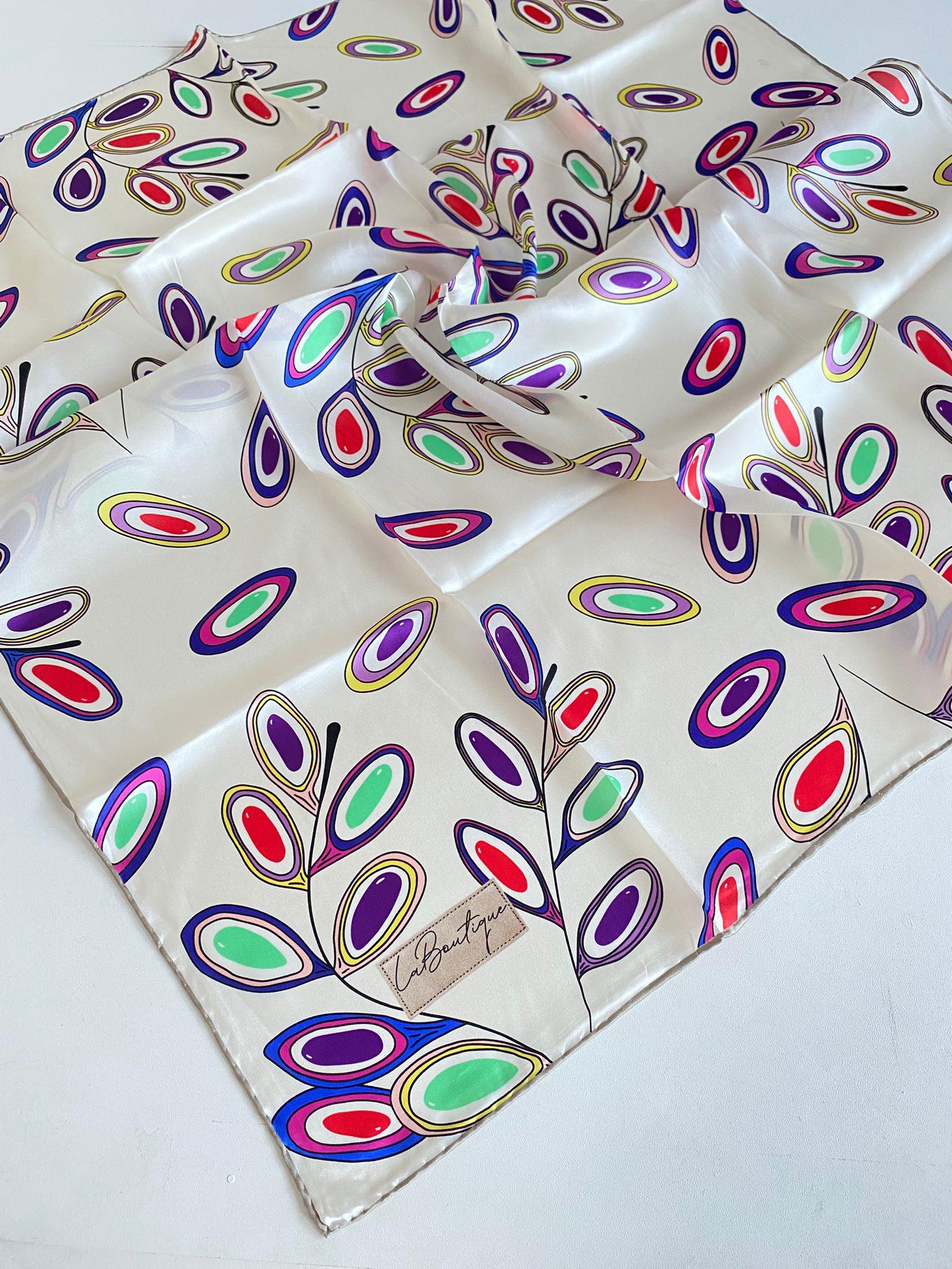 La Boutique Az Hatalı Sura Saf İpek Eşarp 50975 Beyaz Karışık Desen (SYR50975)