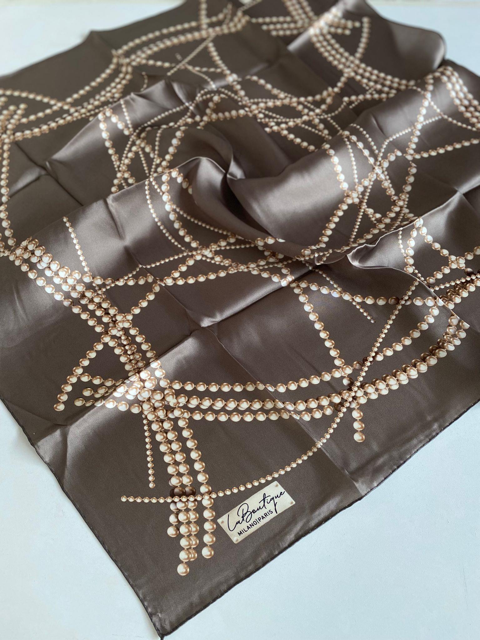 La Boutique Az Hatalı Sura Saf İpek Eşarp 50980 Koyu Vizon Karışık Desen
