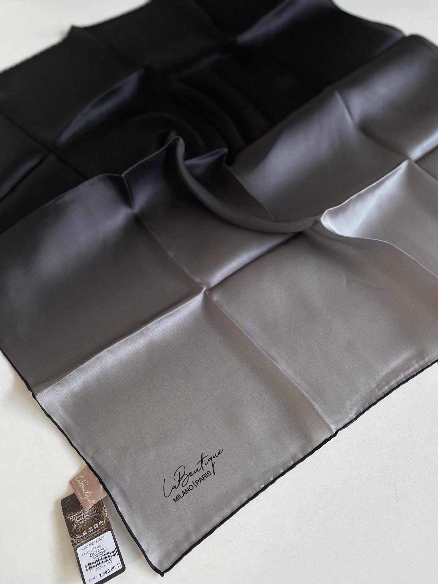 La Boutique Az Hatalı Sura Saf İpek Eşarp 50997 Gri Karışık Desen