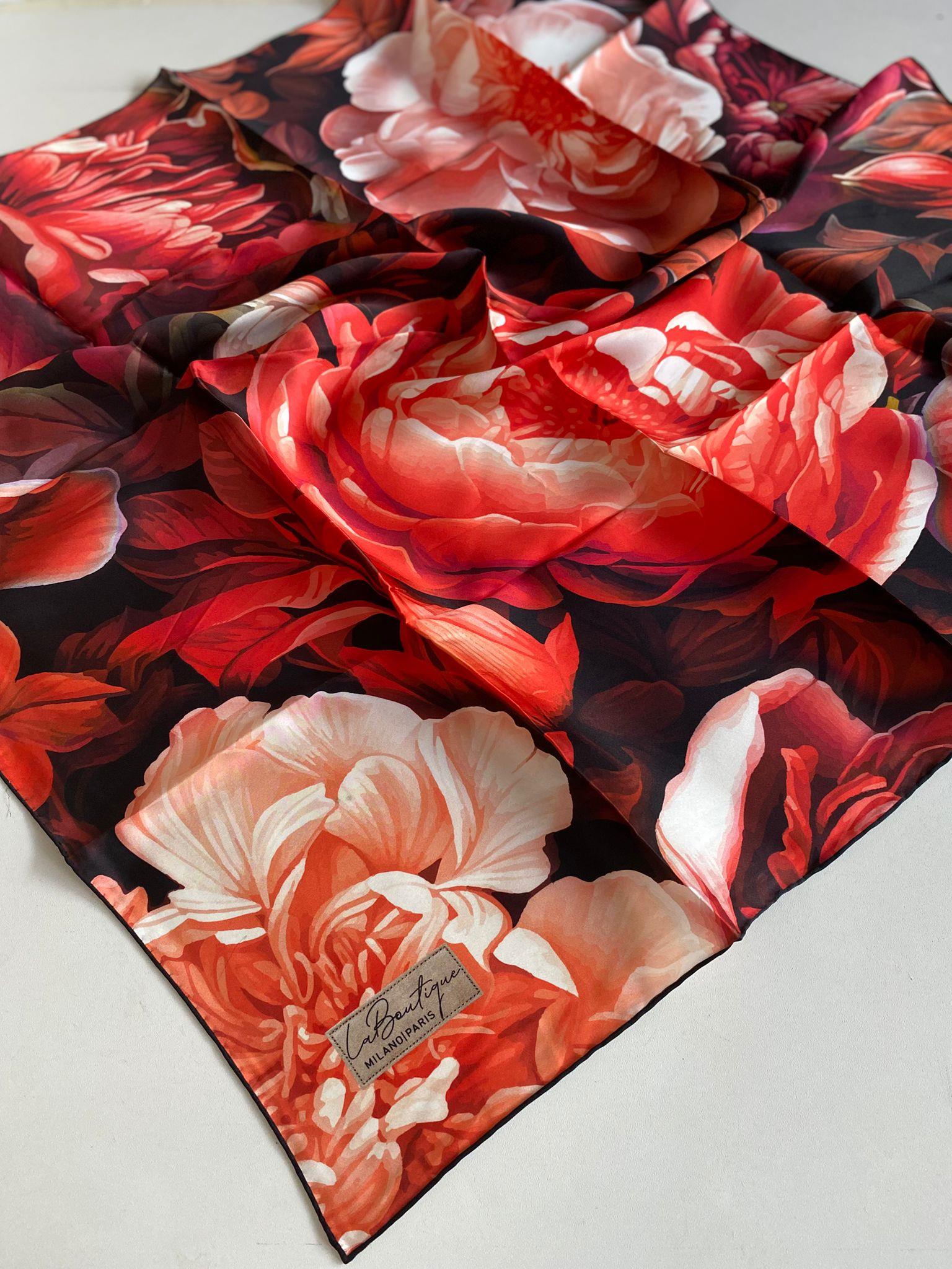 La Boutique Az Hatalı Sura Saf İpek Eşarp 51000 Kırmızı Karışık Desen
