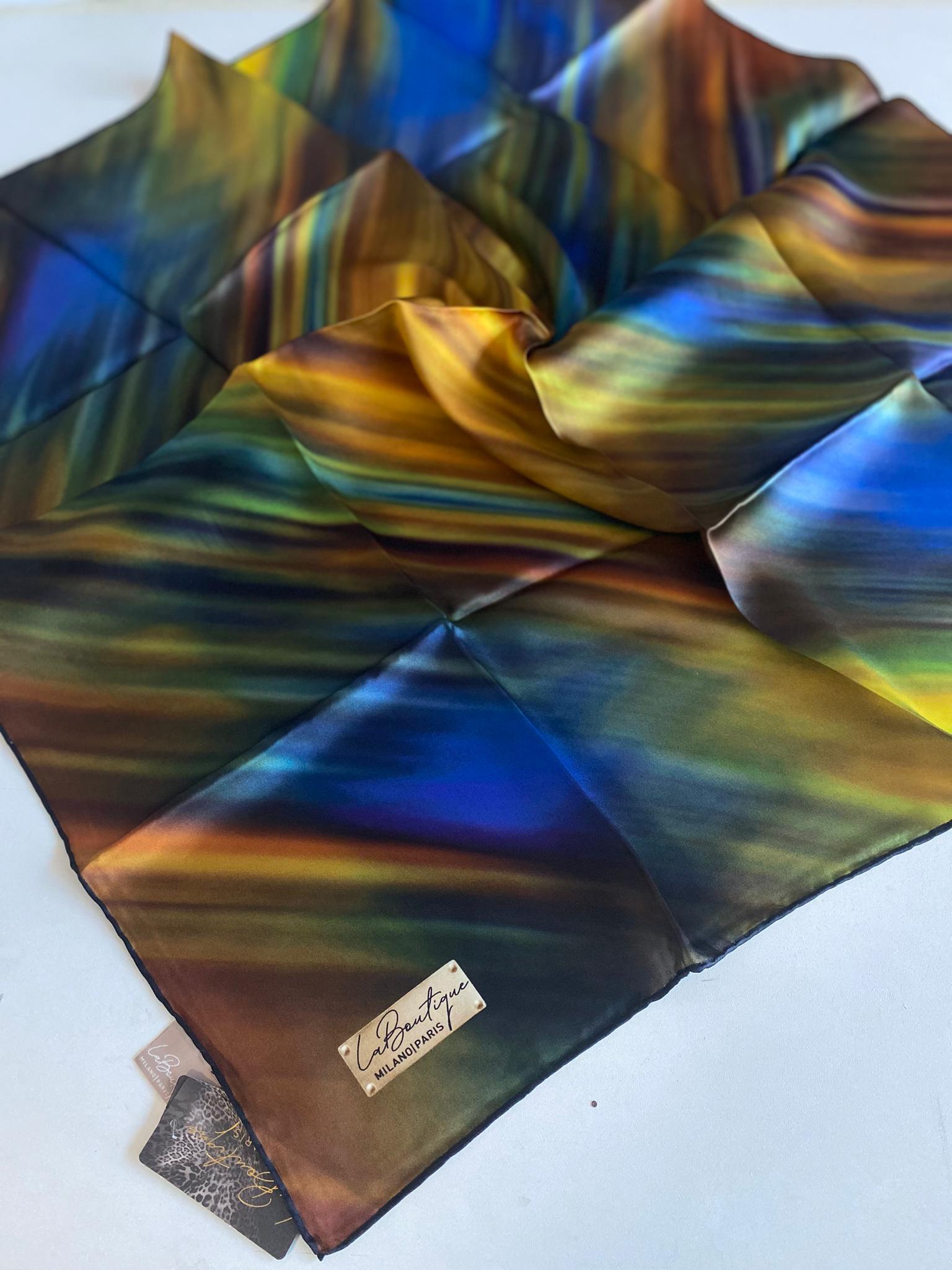 La Boutique Az Hatalı Sura Saf İpek Eşarp 51618 Mavi Karışık Desen