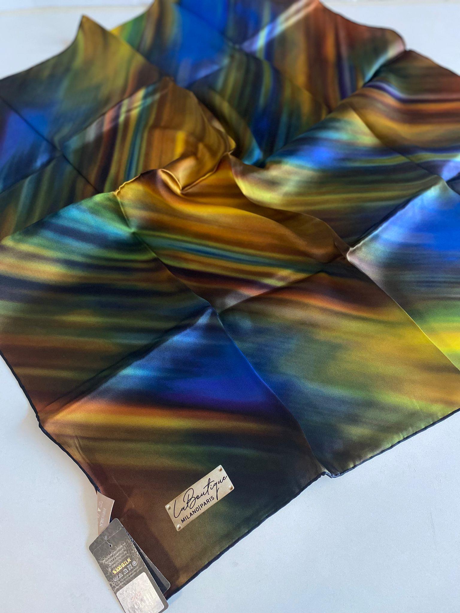 La Boutique Az Hatalı Sura Saf İpek Eşarp 51619 Mavi Karışık Desen