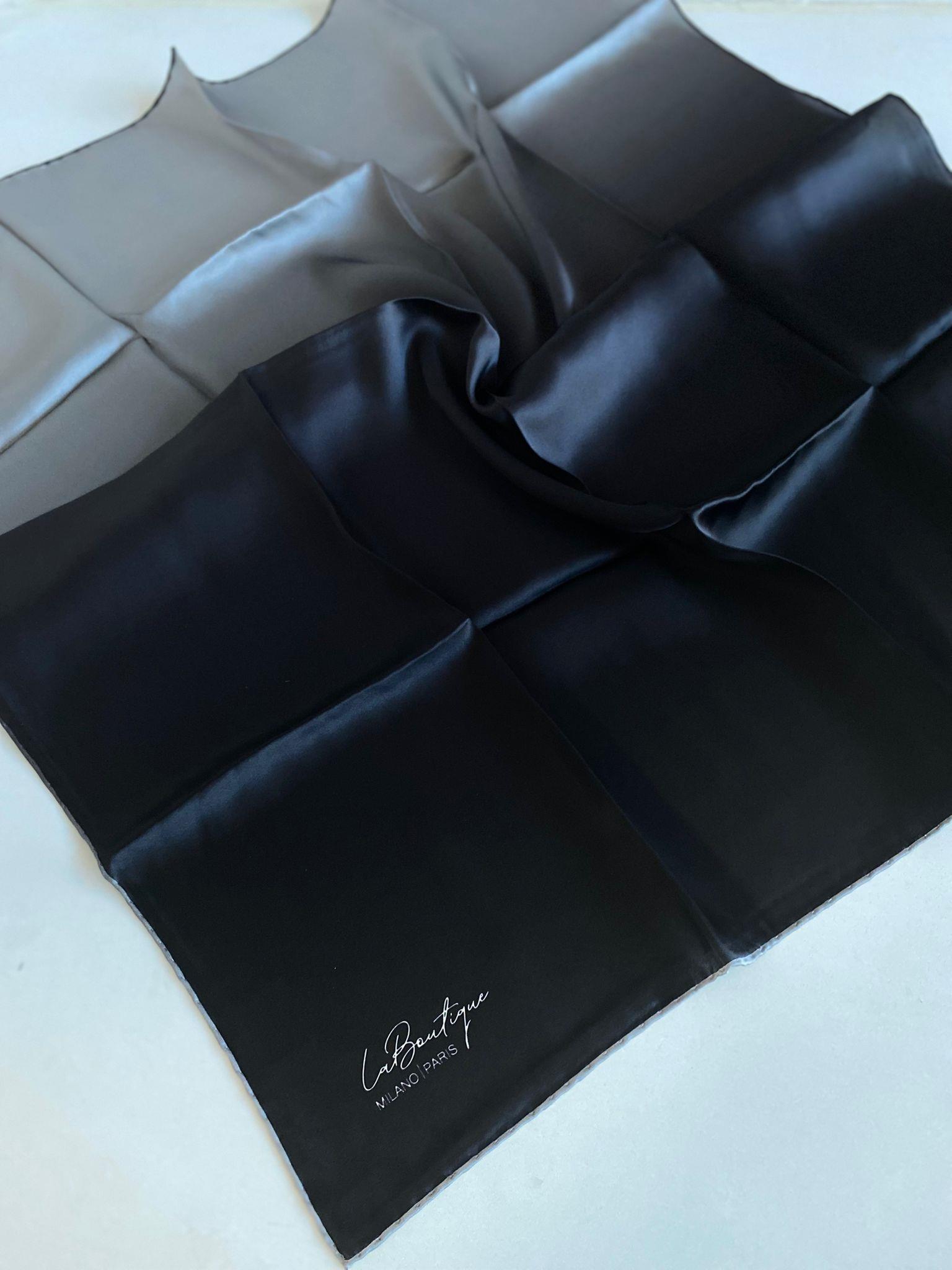 La Boutique Az Hatalı Sura Saf İpek Eşarp 51632 Siyah Degrade Desen (SYR51632)
