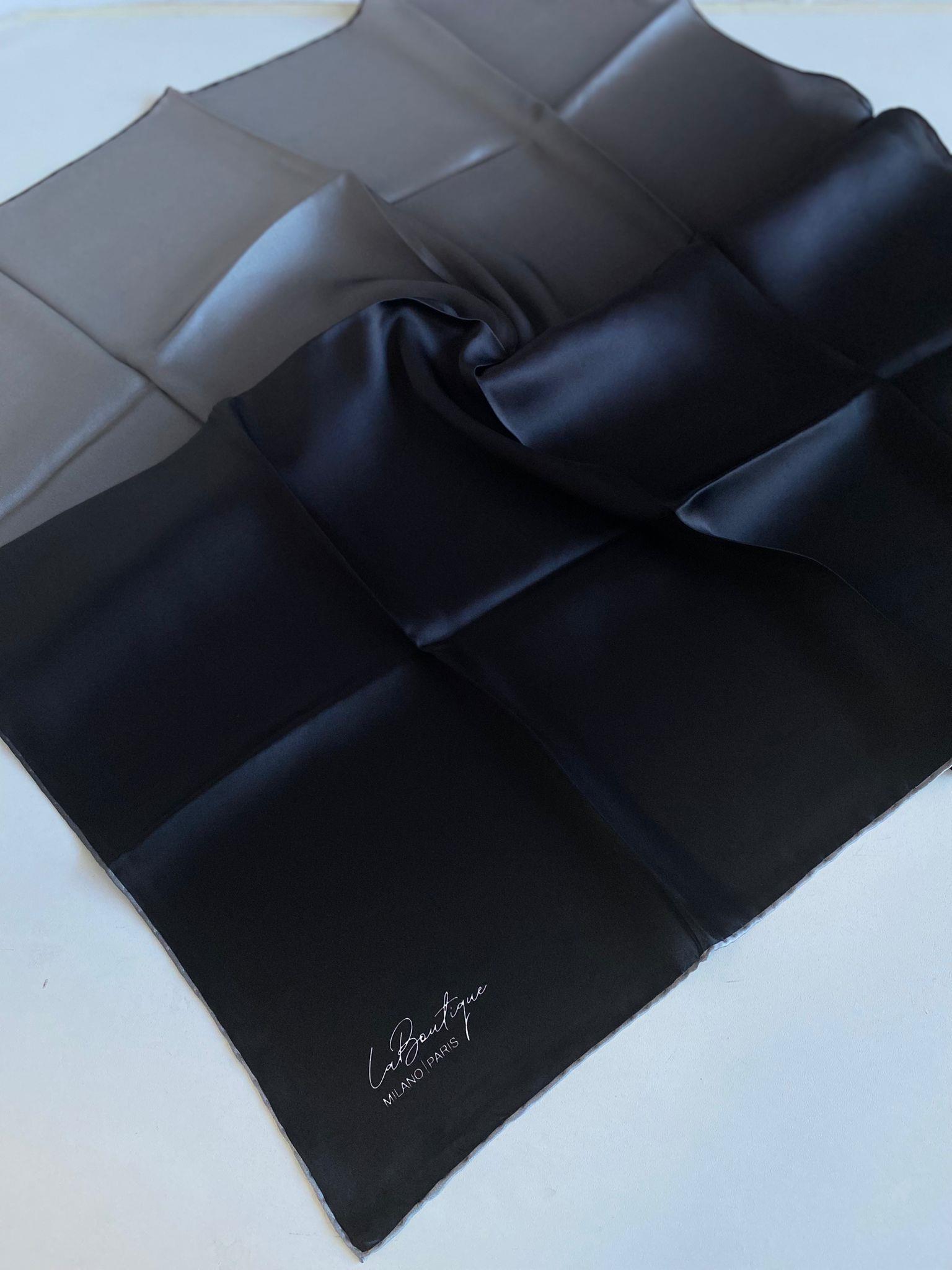 La Boutique Az Hatalı Sura Saf İpek Eşarp 51634 Siyah Degrade Desen (SYR51634)