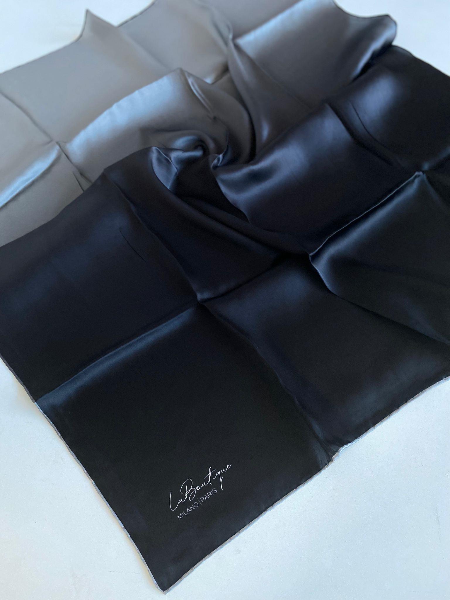 La Boutique Az Hatalı Sura Saf İpek Eşarp 51638 Siyah Degrade Desen (SYR51638)