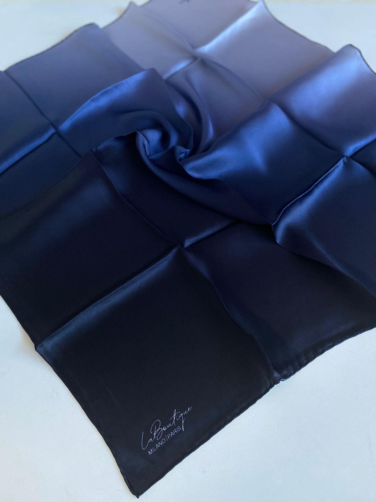 La Boutique Az Hatalı Sura Saf İpek Eşarp 51640 Lacivert Degrade Desen (SYR51640)