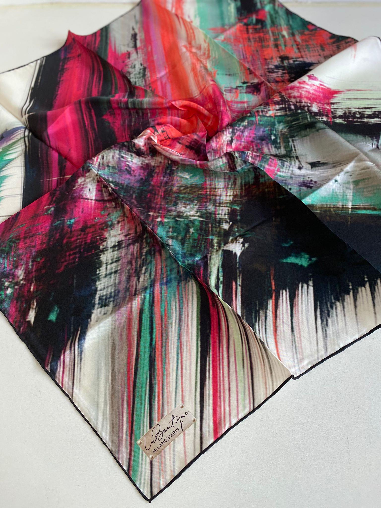 La Boutique Az Hatalı Tivil Saf İpek Eşarp 51011 Beyaz Karışık Desen (SYR51011)