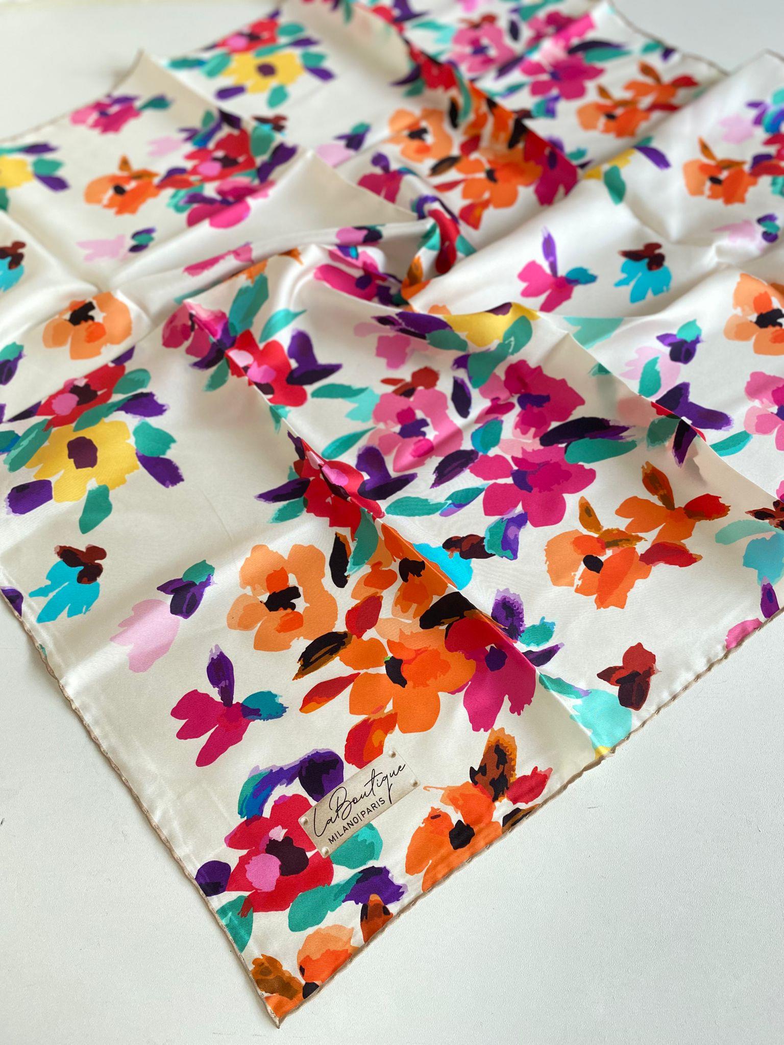 La Boutique Az Hatalı Tivil Saf İpek Eşarp 51013 Beyaz Karışık Desen (SYR51013)