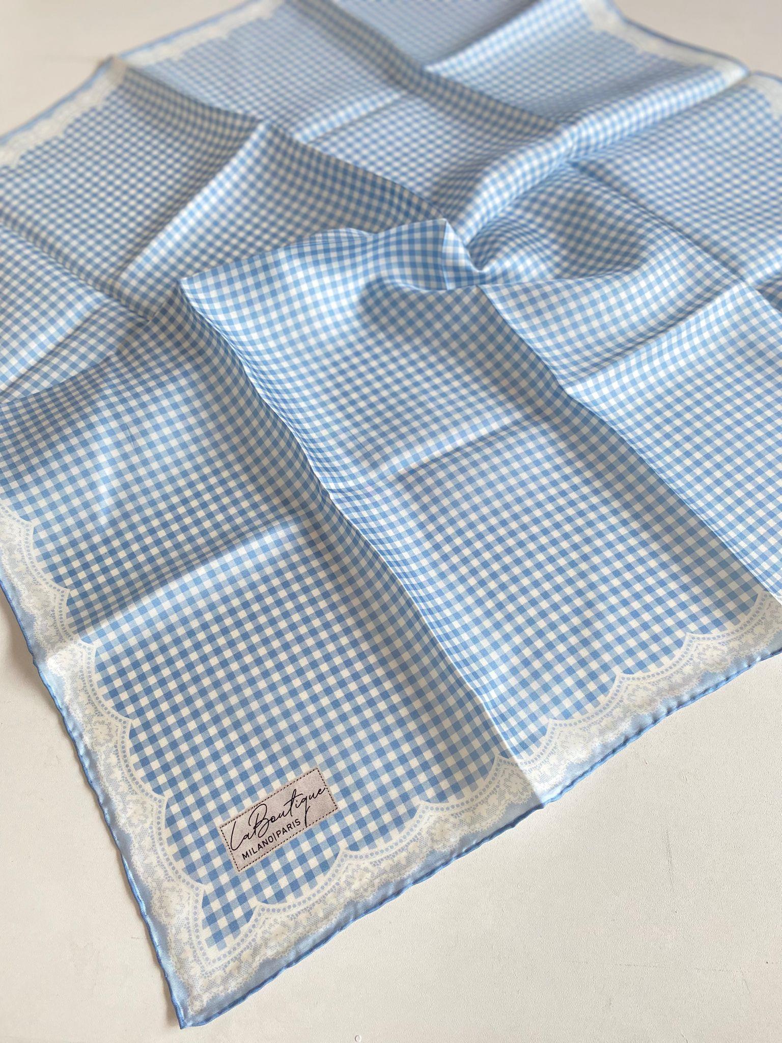 La Boutique Az Hatalı Tivil Saf İpek Eşarp 51025 Mavi Karışık Desen (SYR51025)