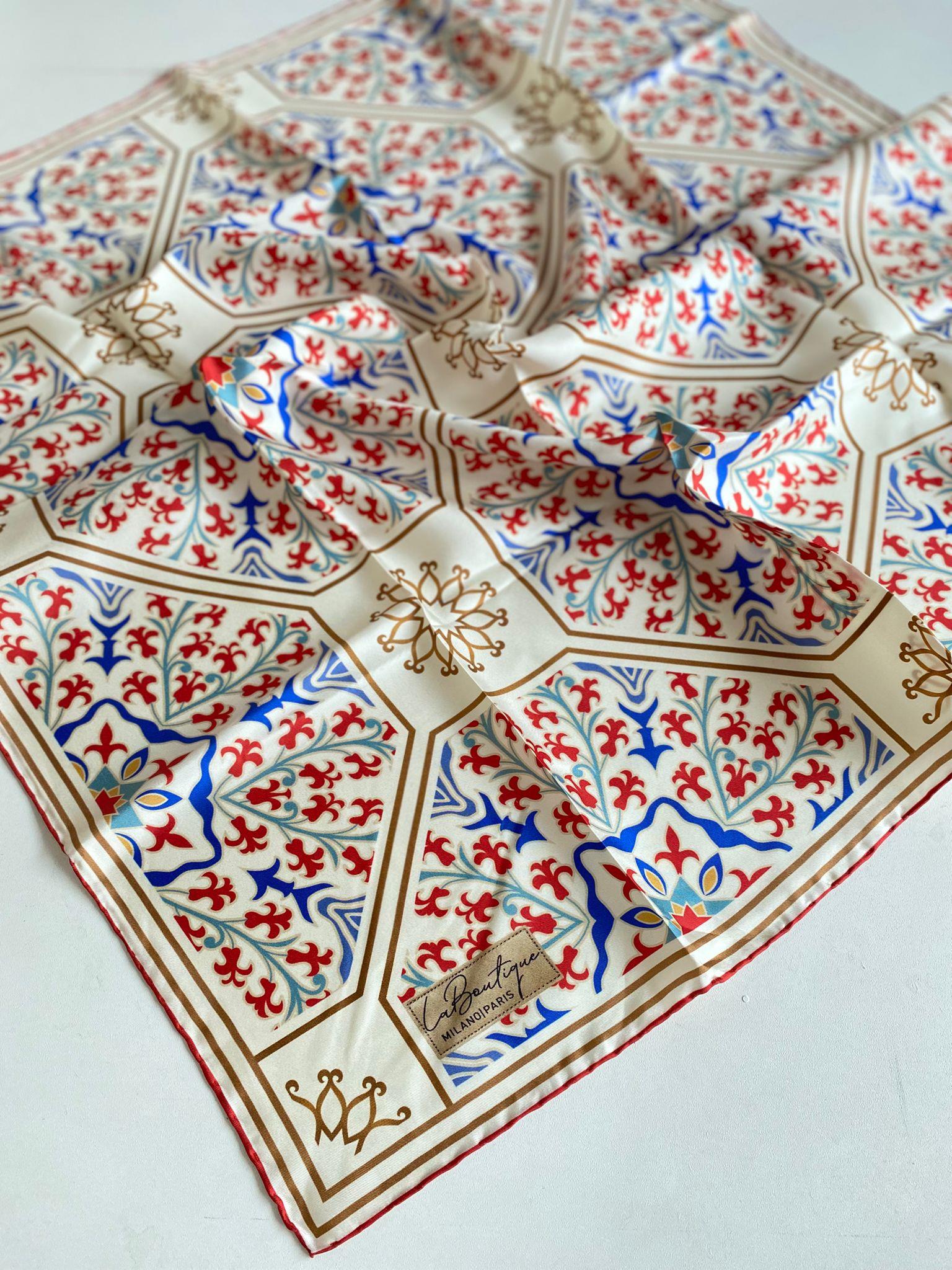 La Boutique Az Hatalı Tivil Saf İpek Eşarp 51026 Beyaz Karışık Desen (SYR51026)