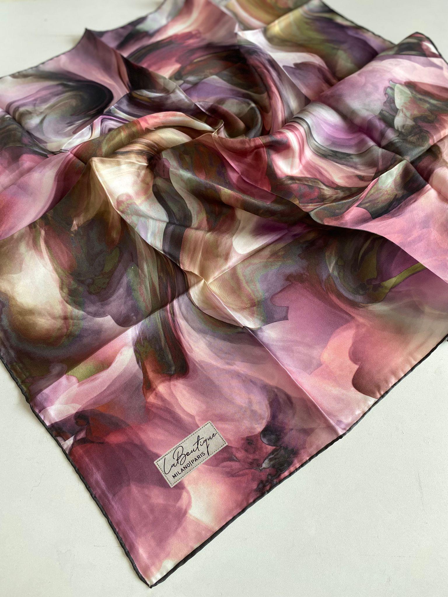 La Boutique Az Hatalı Tivil Saf İpek Eşarp 51041 Pembe Karışık Desen (SYR51041)