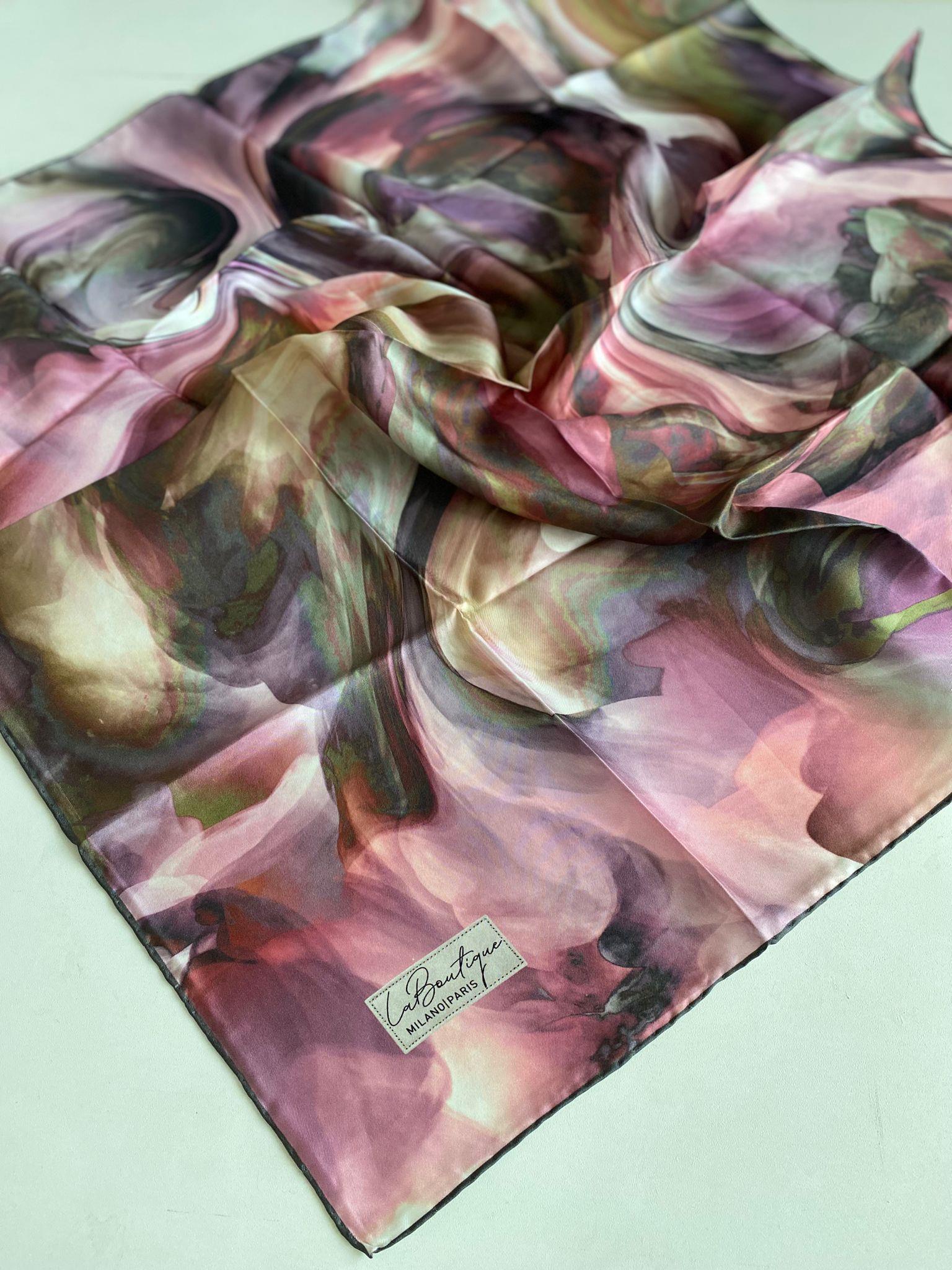 La Boutique Az Hatalı Tivil Saf İpek Eşarp 51043 Pembe Karışık Desen (SYR51043)