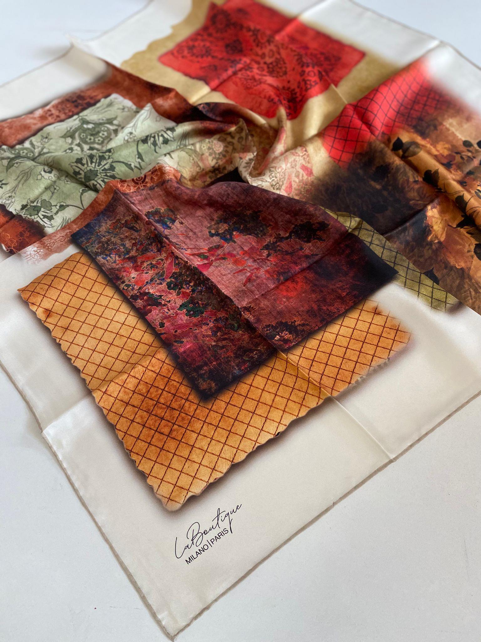 La Boutique Az Hatalı Tivil Saf İpek Eşarp 51046 Beyaz Karışık Desen (SYR51046)