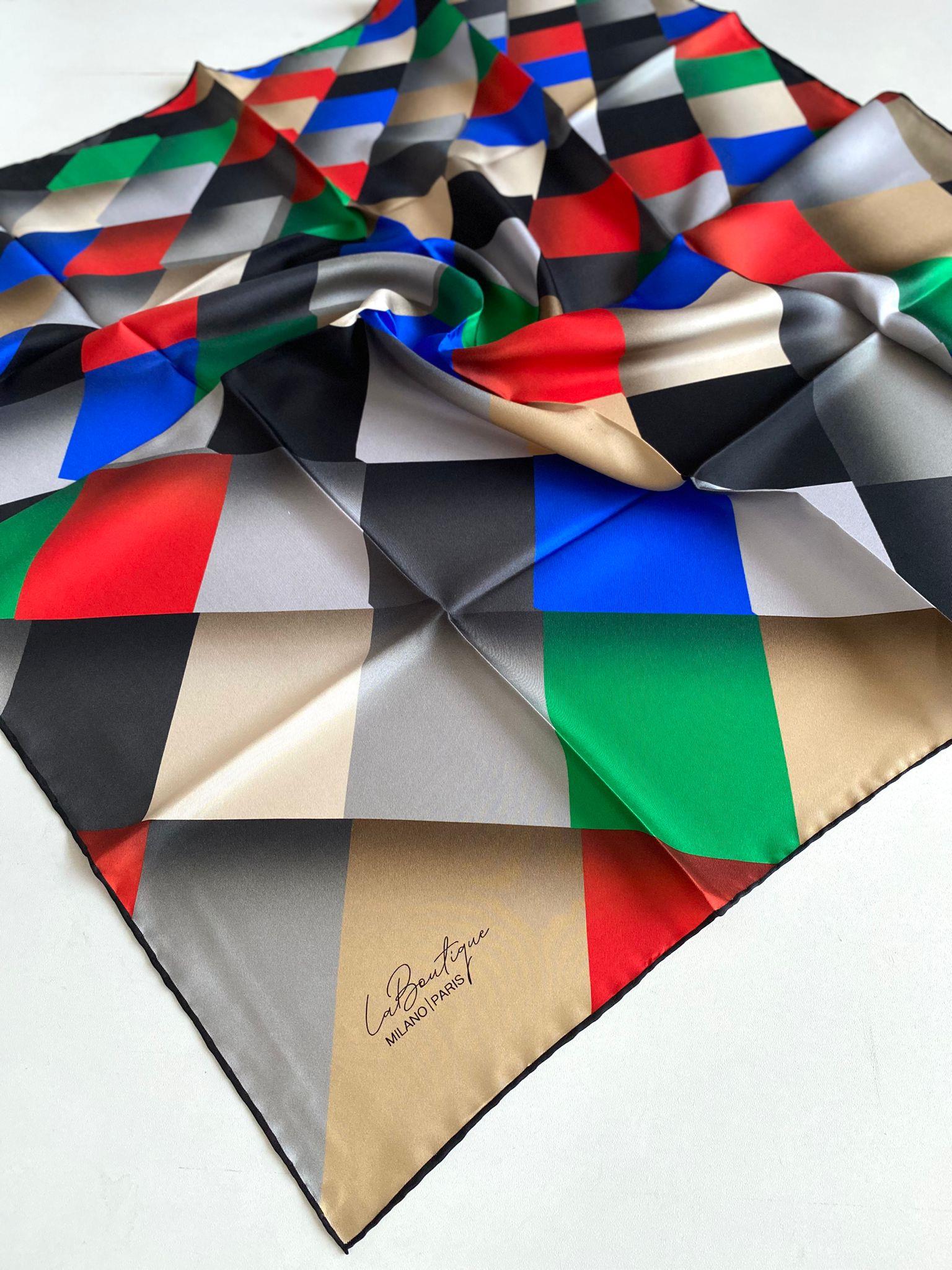 La Boutique Az Hatalı Tivil Saf İpek Eşarp 51047 Siyah Karışık Desen