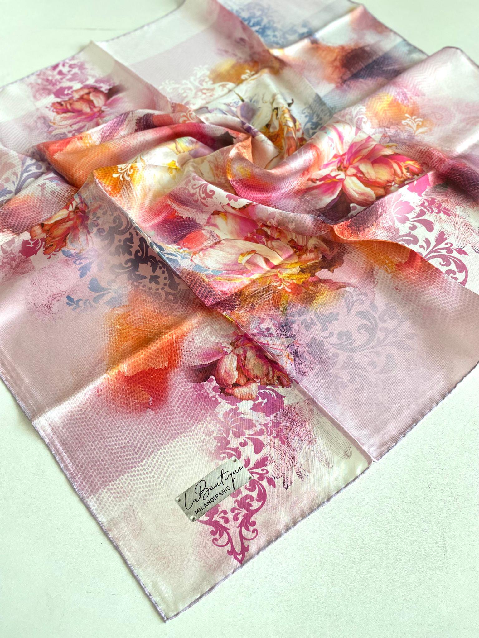 La Boutique Az Hatalı Tivil Saf İpek Eşarp 51062 Pudra Karışık Desen